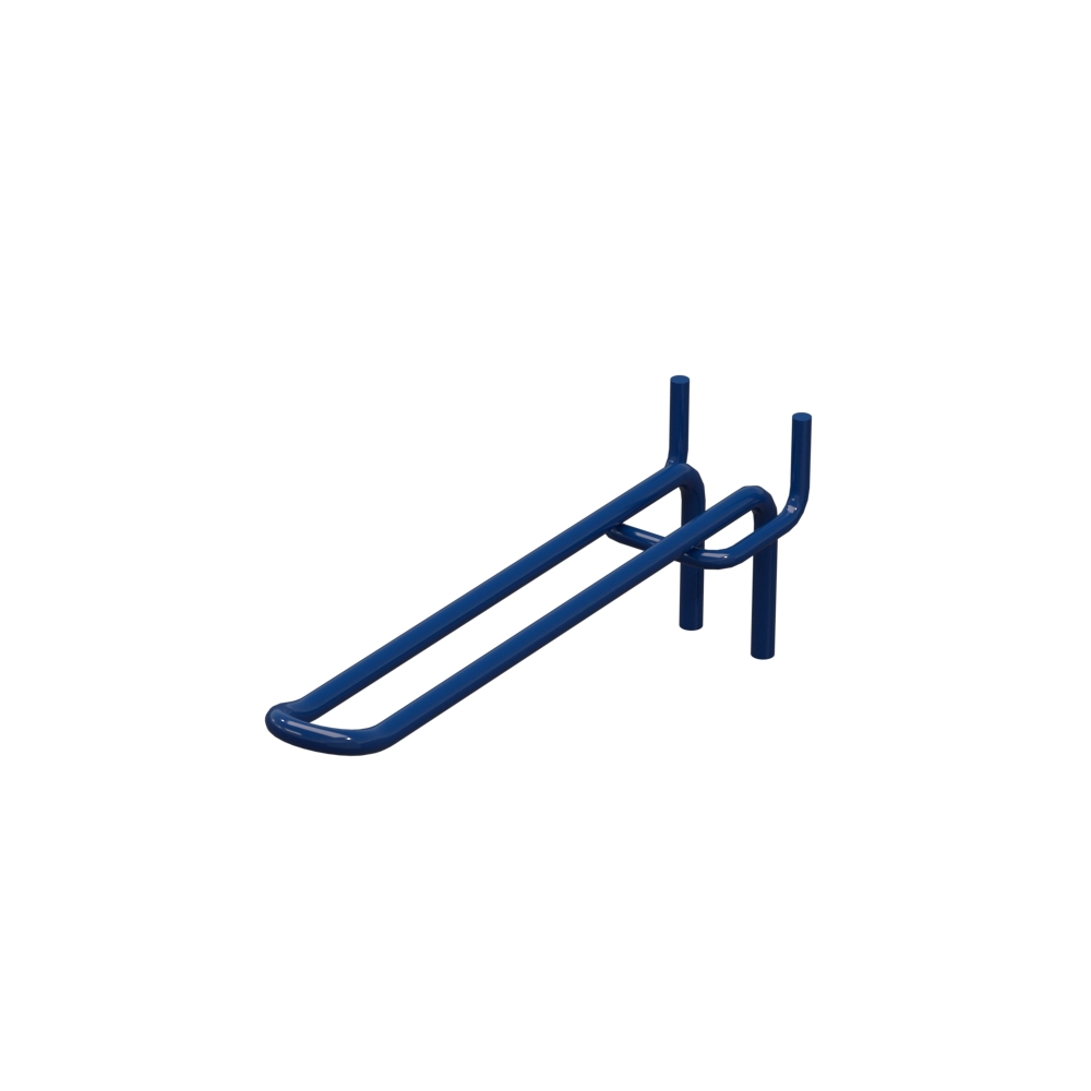 Крючки двойные металлические для перфорации длиной 150 мм обеспечивают аккуратную выкладку продукции в торговых помещениях. Изделие выполнено из металлического прута диаметром 5 мм. Покрытие цвета Синий RAL5002 защищает конструкцию от повреждений и коррозии. Шаг крепления составляет 45 мм. Тип исполнения — Двойной. Способ крепления — На перфорацию.