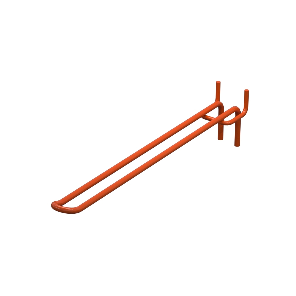 Торговые крючки для перфорации длиной 250 мм предназначены для надежного размещения товаров на перфорированных стендах. Изделие выполнено из металлического прута диаметром 5 мм. Покрытие цвета Оранжевый RAL2004 защищает конструкцию от повреждений и коррозии. Шаг крепления составляет 35 мм. Тип исполнения — Двойной. Способ крепления — На перфорацию.