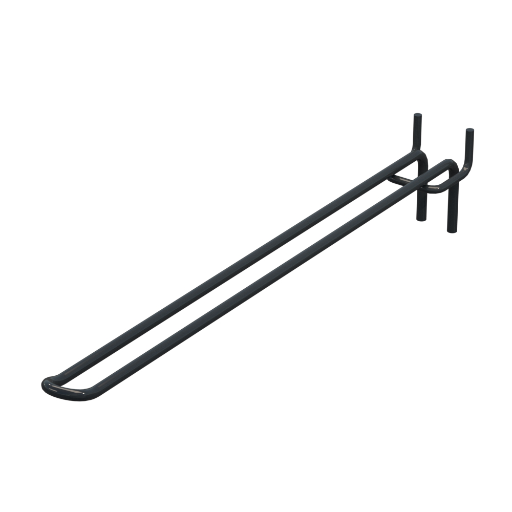 Двойные крючки для перфорации длиной 300 мм обеспечивают аккуратную выкладку продукции в торговых помещениях. Изделие выполнено из металлического прута диаметром 5 мм. Покрытие цвета Графитовый RAL7016 защищает конструкцию от повреждений и коррозии. Шаг крепления составляет 30 мм. Тип исполнения — Двойной. Способ крепления — На перфорацию.