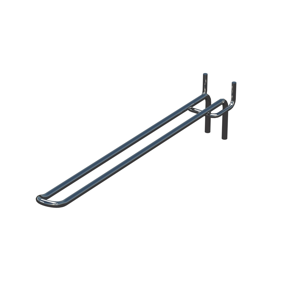 Торговые крючки для перфорации длиной 250 мм обеспечивают аккуратную выкладку продукции в торговых помещениях. Изделие выполнено из металлического прута диаметром 5 мм. Покрытие цвета Порошковая краска Хром защищает конструкцию от повреждений и коррозии. Шаг крепления составляет 50 мм. Тип исполнения — Двойной. Способ крепления — На перфорацию.