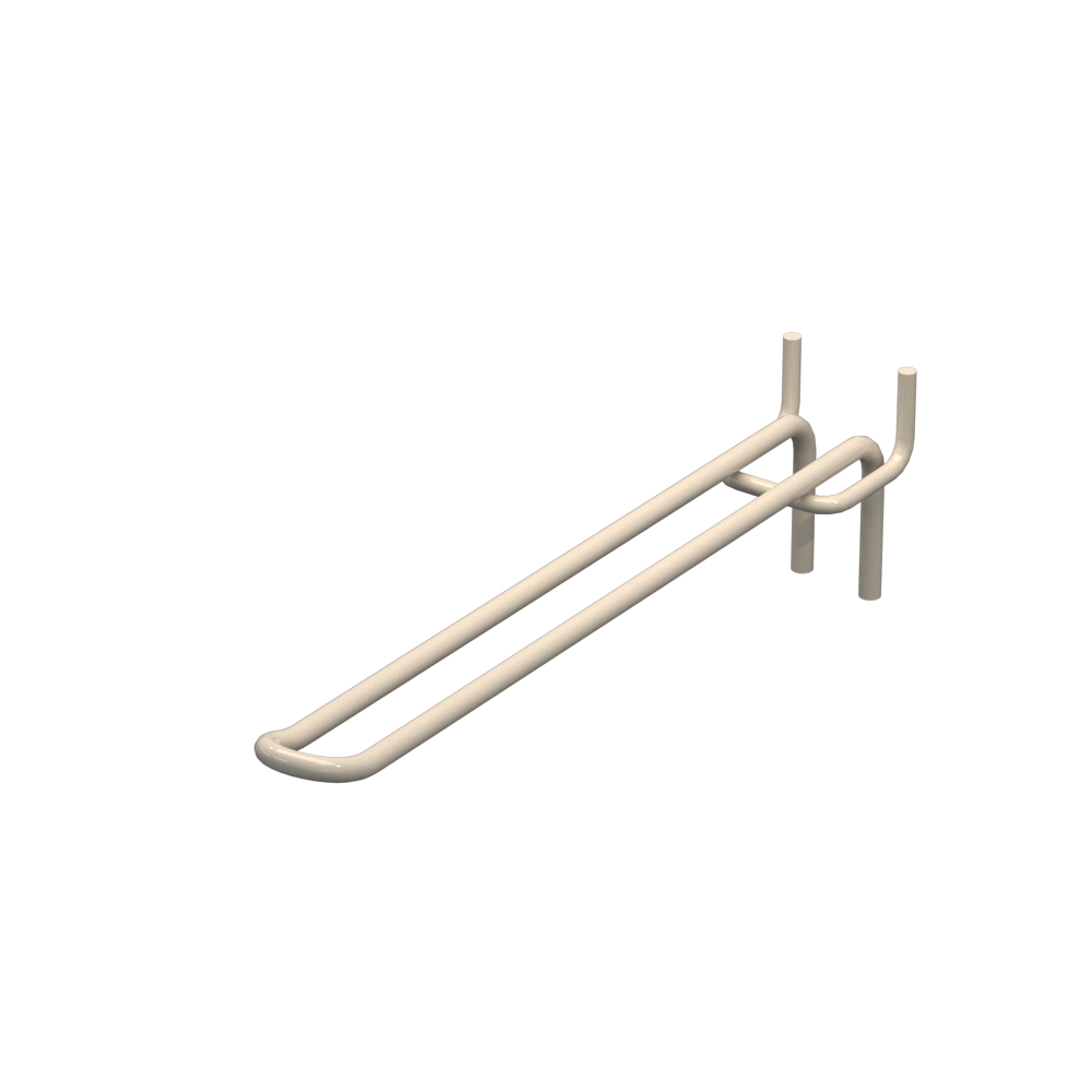 Крючки двойные металлические для перфорации длиной 200 мм обеспечивают аккуратную выкладку продукции в торговых помещениях. Прут диаметром 5 мм обеспечивает прочность изделия. Цвет покрытия — Бежевый RAL9001. Шаг между отверстиями для крепления — 35 мм. Тип исполнения — Двойной. Вид крепления — На перфорацию.