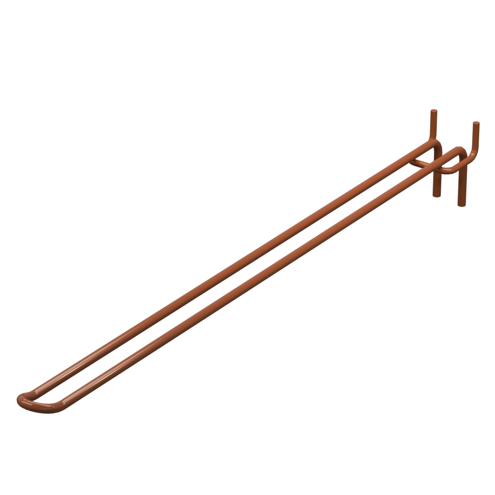 Купить крючки на перфорацию двойные длиной 400 мм обеспечивают аккуратную выкладку продукции в торговых помещениях. Прут диаметром 5 мм обеспечивает прочность изделия. Цвет покрытия — Коричневый RAL8023. Шаг между отверстиями для крепления — 40 мм. Тип исполнения — Двойной. Вид крепления — На перфорацию.