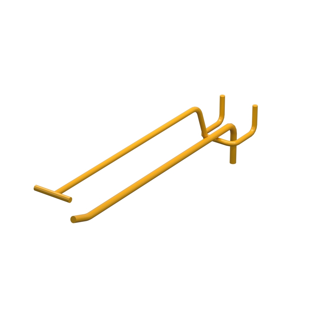 Крючки для перфорации с ценникодержателем длиной 200 мм предназначены для размещения продукции на торговых стендах с перфорацией. Изделие изготовлено из стали с прутом диаметром 5 мм. Поверхность окрашена в цвет Желтый RAL1023. Шаг перфорации — 45 мм. Тип конструкции — Одинарный с ценникодержателем. Способ монтажа — На перфорацию.