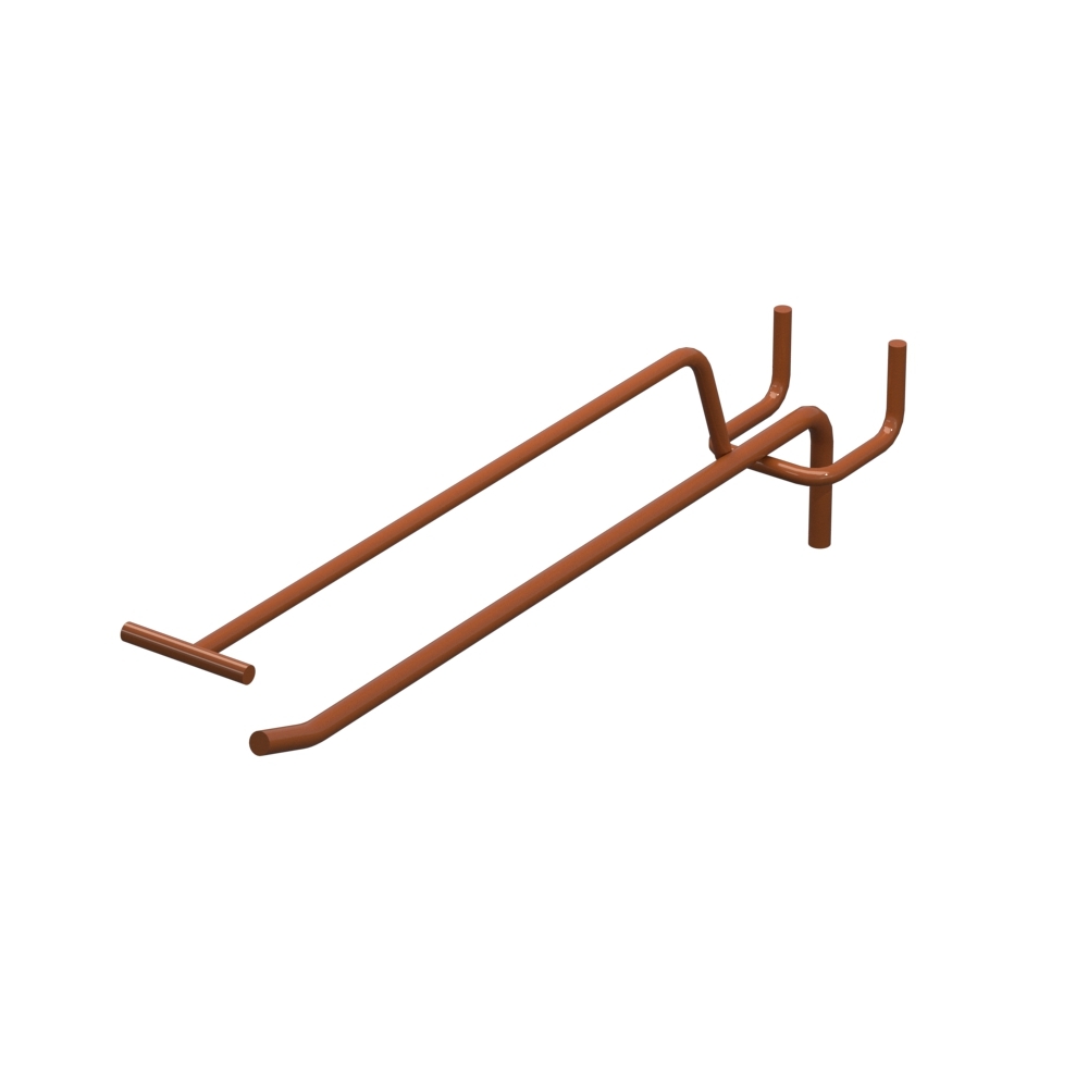 Торговый крючок с держателем ценника длиной 200 мм применяются для выкладки продукции в магазинах и торговых точках. Металлический прут толщиной 5 мм гарантирует надежность. Цвет покрытия — Коричневый RAL8023. Шаг между отверстиями перфорации составляет 50 мм. Тип изделия — Одинарный с ценникодержателем. Способ крепления — На перфорацию.