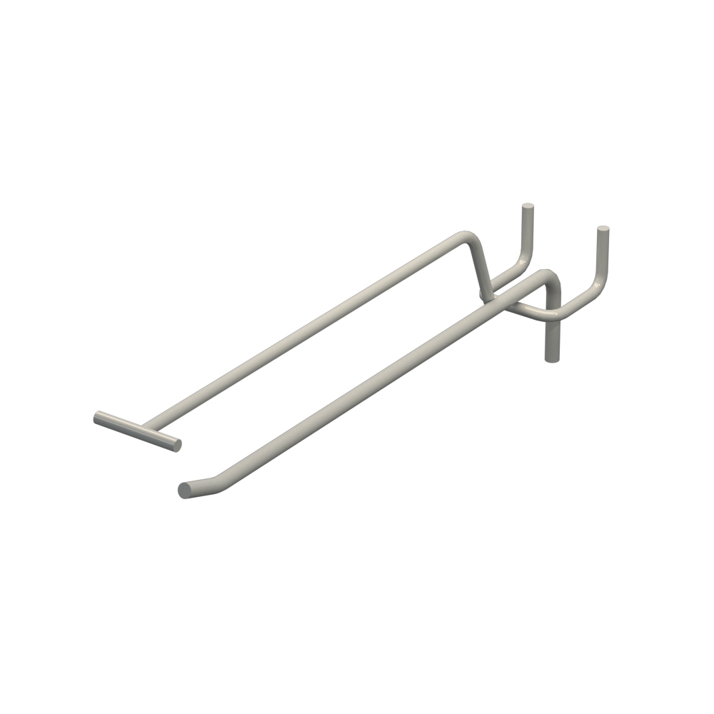 Одинарные торговые крючки с ценникодержателем на перфорацию длиной 200 мм предназначены для размещения продукции на торговых стендах с перфорацией. Металлический прут толщиной 5 мм гарантирует надежность. Цвет покрытия — Светло серый RAL7035. Шаг между отверстиями перфорации составляет 45 мм. Тип изделия — Одинарный с ценникодержателем. Способ крепления — На перфорацию.