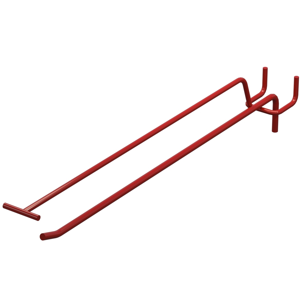 Крючки одинарные с ценникодержателем длиной 300 мм обеспечивают удобное размещение товаров на перфорированных панелях. Изделие изготовлено из стали с прутом диаметром 5 мм. Поверхность окрашена в цвет Красный RAL3020. Шаг перфорации — 40 мм. Тип конструкции — Одинарный с ценникодержателем. Способ монтажа — На перфорацию.