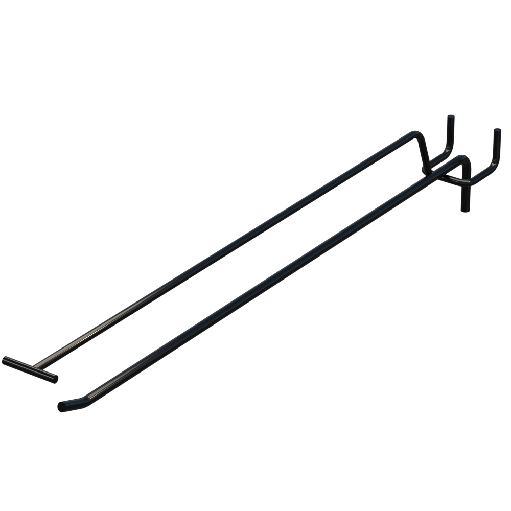 Крючки одинарные с ценникодержателем длиной 350 мм предназначены для размещения продукции на торговых стендах с перфорацией. Изделие изготовлено из стали с прутом диаметром 5 мм. Поверхность окрашена в цвет Черный RAL9005. Шаг перфорации — 50 мм. Тип конструкции — Одинарный с ценникодержателем. Способ монтажа — На перфорацию.
