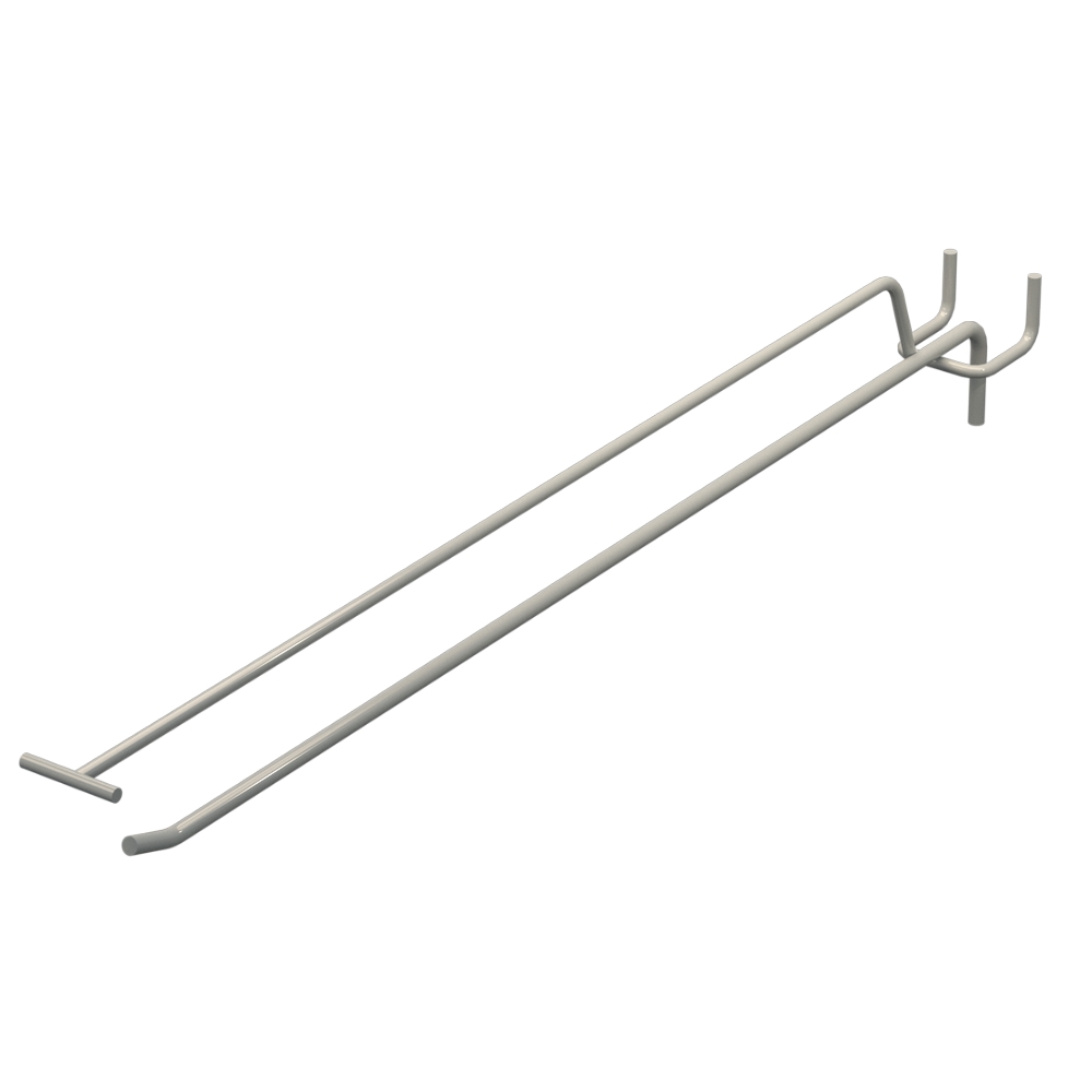 Крючок для магазина с ценникодержателем длиной 400 мм применяются для выкладки продукции в магазинах и торговых точках. Металлический прут толщиной 5 мм гарантирует надежность. Цвет покрытия — Светло серый RAL7035. Шаг между отверстиями перфорации составляет 45 мм. Тип изделия — Одинарный с ценникодержателем. Способ крепления — На перфорацию.