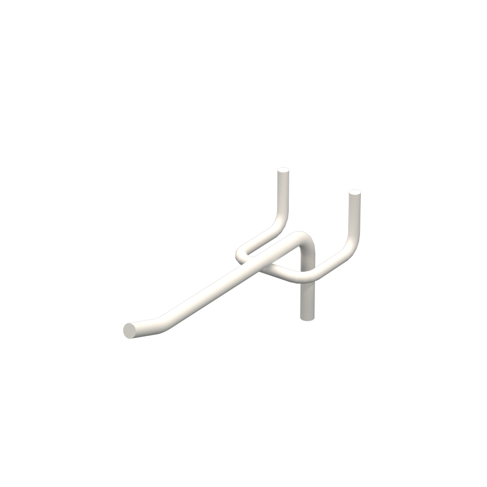 Крючки для перфорации длиной 100 мм предназначен для размещения товаров на торговых стендах с перфорацией. Изделие выполнено из металла с прутом диаметром 5 мм. Покрытие цвета Белый RAL9003 обеспечивает защиту от коррозии. Шаг крепления — 22.5 мм. Тип исполнения — Одинарный. Крепление — На перфорацию.