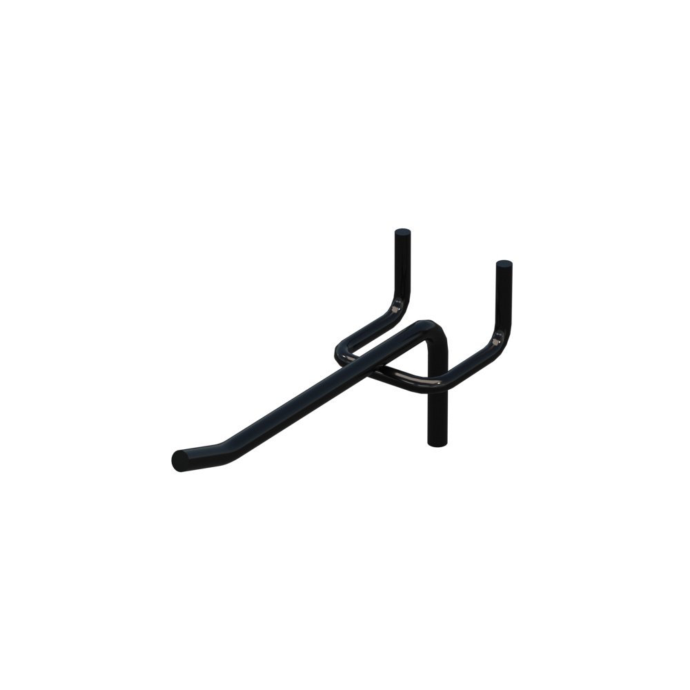 Крючок для магазина длиной 100 мм изготовлен из металлического прута диаметром 5 мм. Материал изготовления — стальной прут диаметром 5 мм. Длина крючка составляет 100 мм. Поверхность окрашена в цвет Черный RAL9005. Шаг перфорации — 22.5 мм. Крючок относится к типу Одинарный, крепление — На перфорацию.