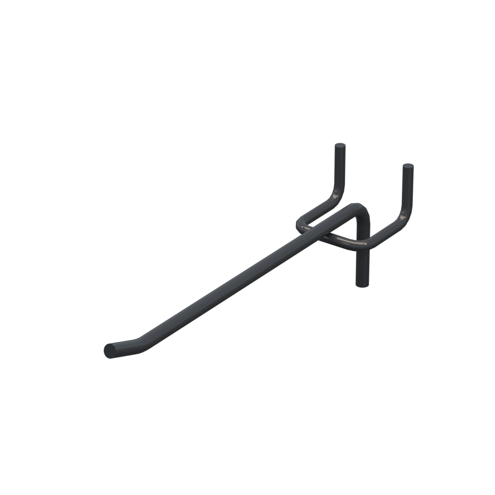 Крючок для перфорации одинарный с длиной 150 мм применяется для выкладки продукции на перфорированных панелях. Изделие выполнено из металла с прутом диаметром 5 мм. Покрытие цвета Антрацит RAL7024 обеспечивает защиту от коррозии. Шаг крепления — 40 мм. Тип исполнения — Одинарный. Крепление — На перфорацию.