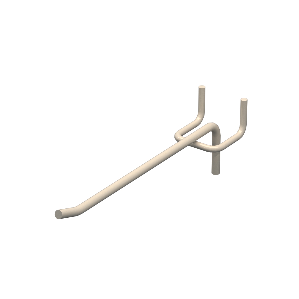 Крючок для магазина длиной 150 мм изготовлен из металлического прута диаметром 4 мм. Прут диаметром 4 мм обеспечивает прочность и надежность. Длина изделия — 150 мм. Покрытие — Бежевый RAL9001. Крючок предназначен для крепления на перфорации с шагом 40 мм. Тип — Одинарный. Способ крепления — На перфорацию.