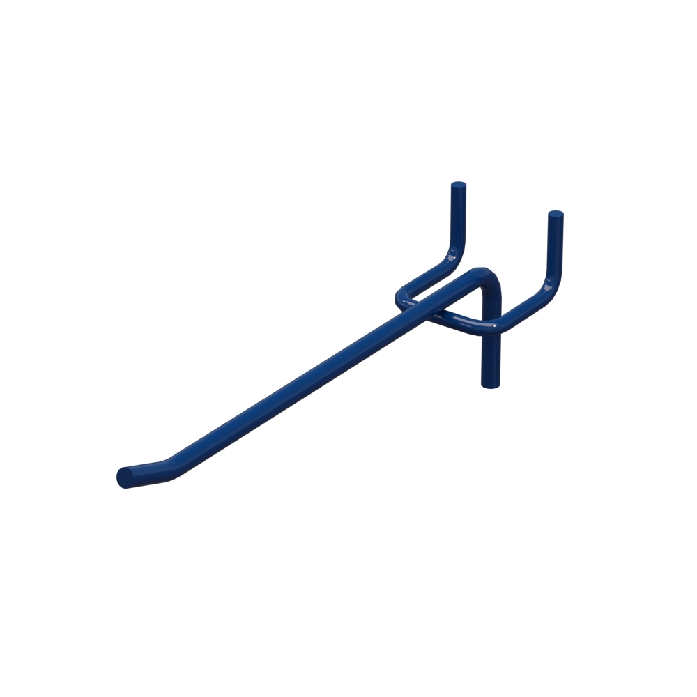 Крючок для перфорации одинарный длиной 150 мм предназначен для размещения товаров на торговых стендах с перфорацией. Материал изготовления — стальной прут диаметром 4 мм. Длина крючка составляет 150 мм. Поверхность окрашена в цвет Синий RAL5002. Шаг перфорации — 45 мм. Крючок относится к типу Одинарный, крепление — На перфорацию.