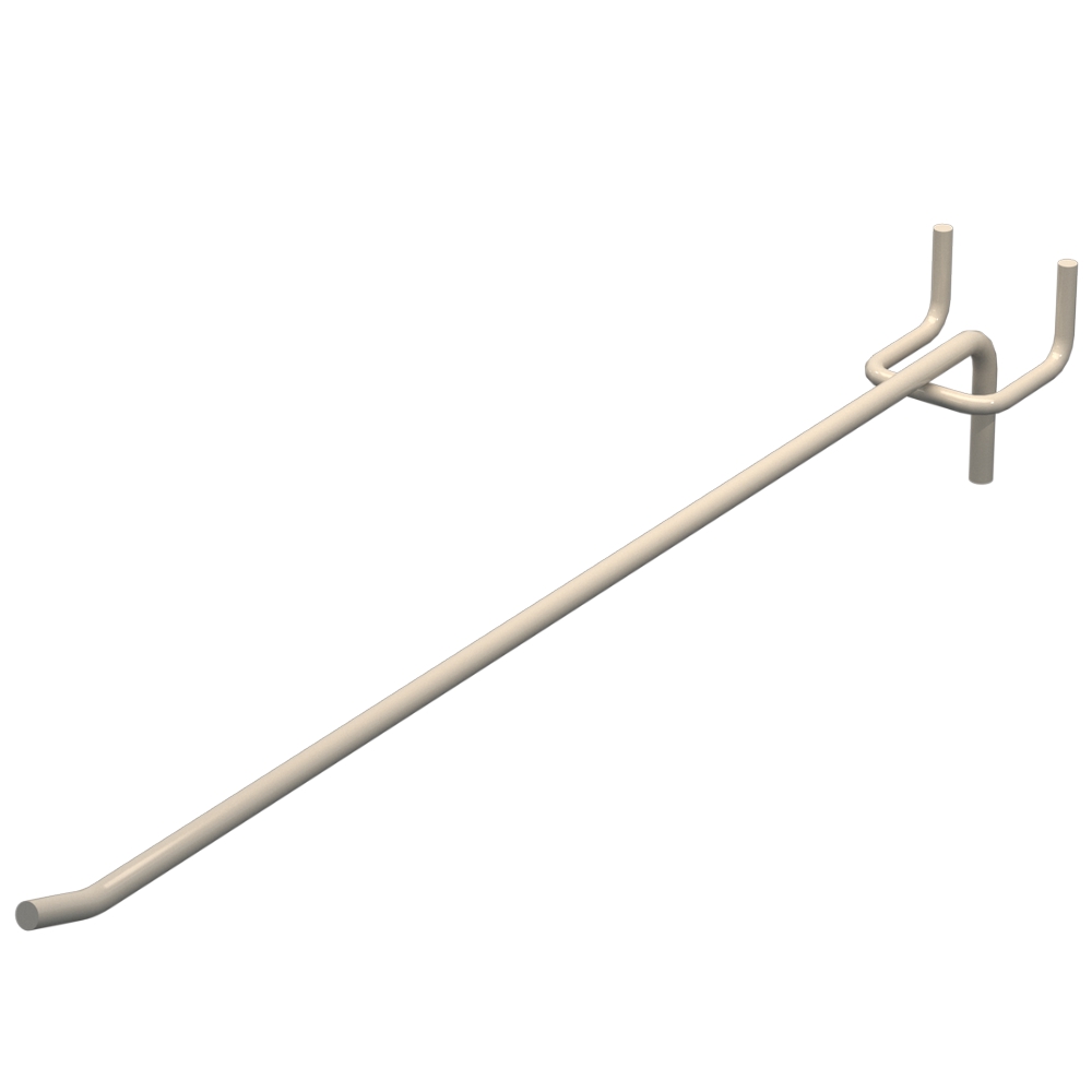 Одинарный торговый крючок с длиной 300 мм применяется для выкладки продукции на перфорированных панелях. Прут диаметром 5 мм обеспечивает прочность и надежность. Длина изделия — 300 мм. Покрытие — Бежевый RAL9001. Крючок предназначен для крепления на перфорации с шагом 22.5 мм. Тип — Одинарный. Способ крепления — На перфорацию.