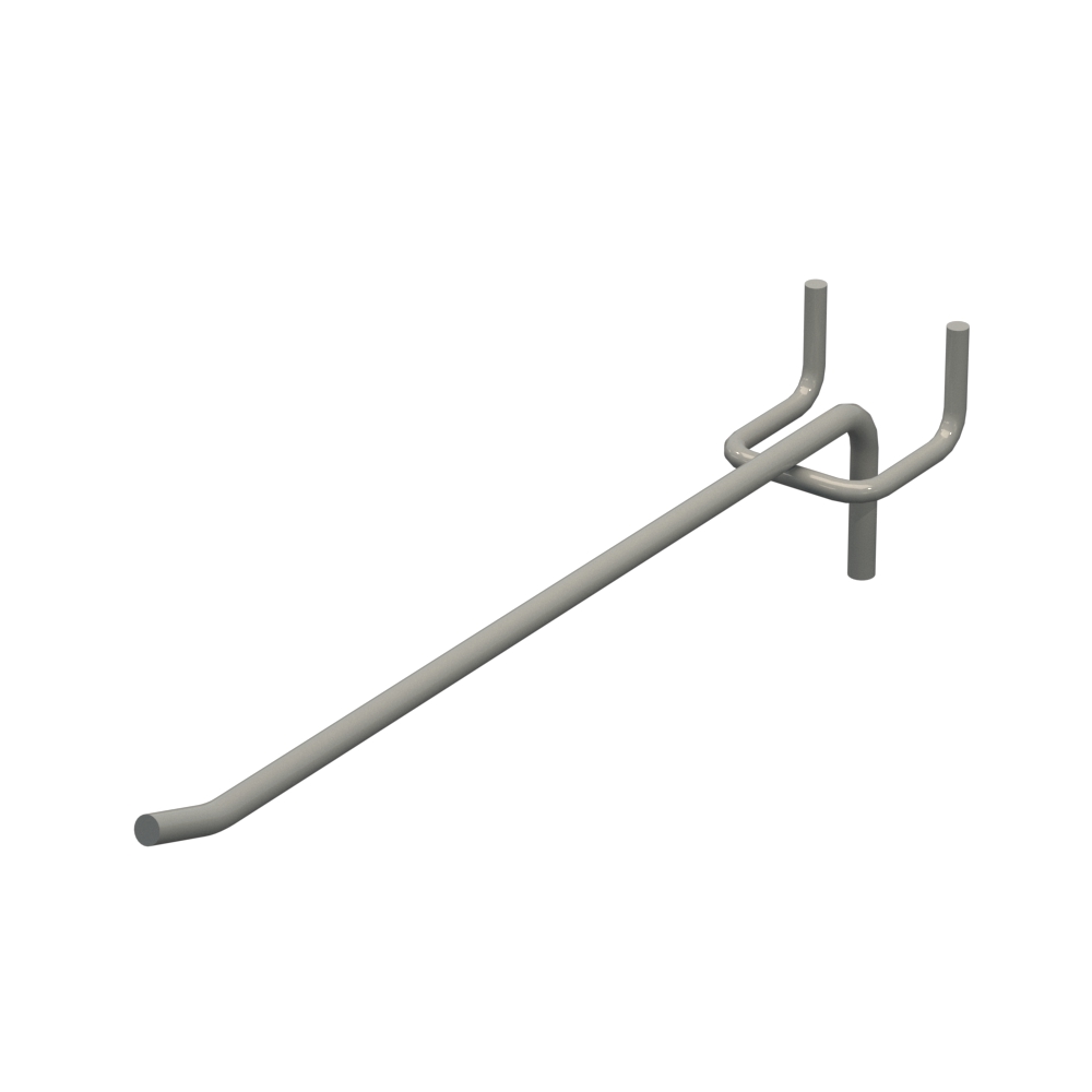 Крючок для магазина длиной 200 мм предназначен для размещения товаров на торговых стендах с перфорацией. Прут диаметром 6 мм обеспечивает прочность и надежность. Длина изделия — 200 мм. Покрытие — Серый RAL9006. Крючок предназначен для крепления на перфорации с шагом 30 мм. Тип — Одинарный. Способ крепления — На перфорацию.