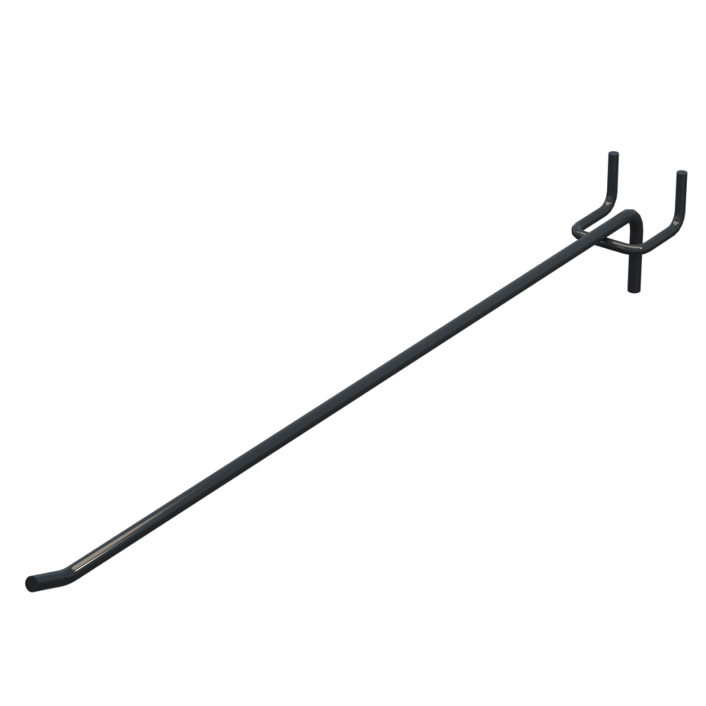 Крючок для магазина длиной 350 мм изготовлен из металлического прута диаметром 5 мм. Изделие выполнено из металла с прутом диаметром 5 мм. Покрытие цвета Графитовый RAL7016 обеспечивает защиту от коррозии. Шаг крепления — 30 мм. Тип исполнения — Одинарный. Крепление — На перфорацию.
