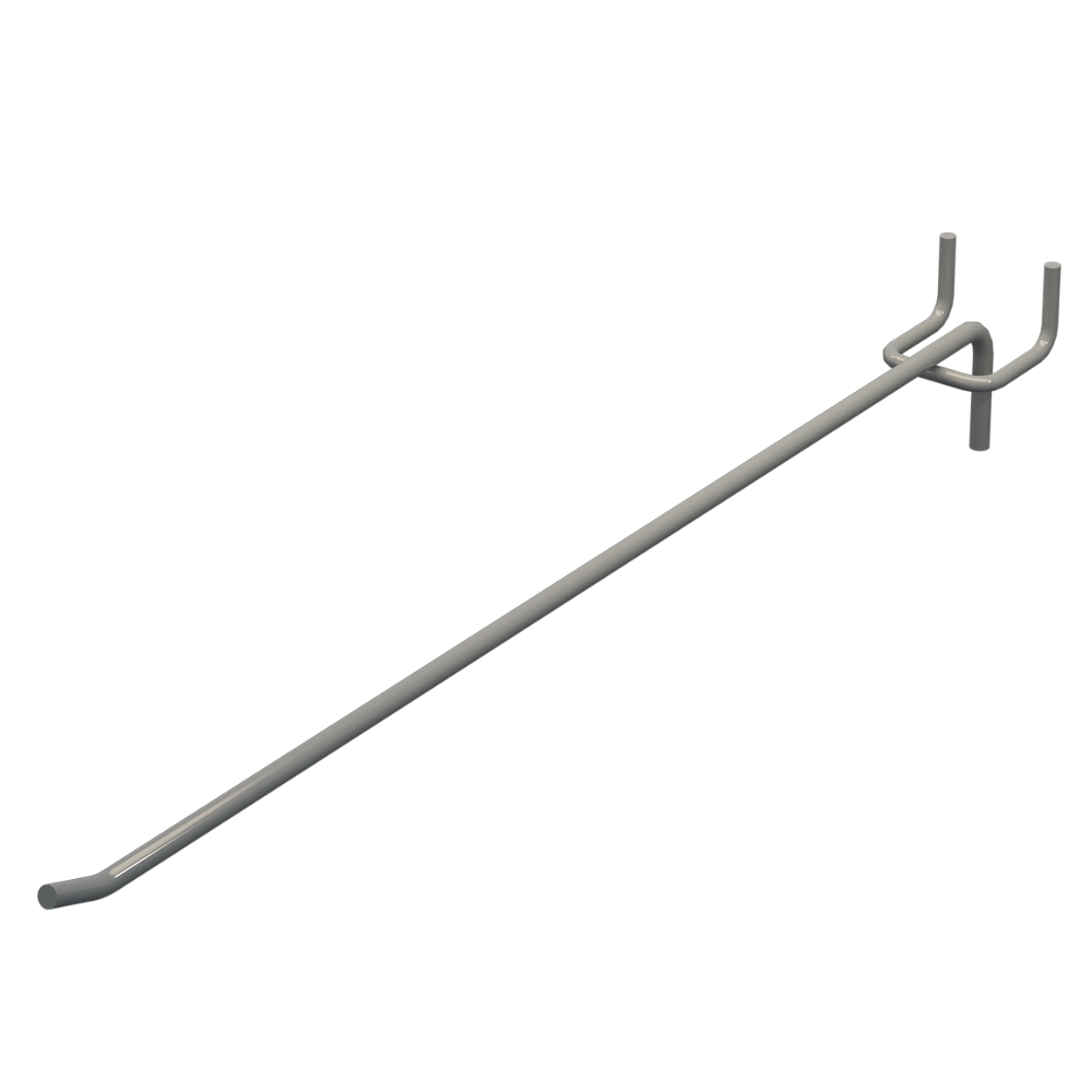 Крючки для перфорации с длиной 350 мм применяется для выкладки продукции на перфорированных панелях. Изделие выполнено из металла с прутом диаметром 5 мм. Покрытие цвета Серый RAL9006 обеспечивает защиту от коррозии. Шаг крепления — 30 мм. Тип исполнения — Одинарный. Крепление — На перфорацию.