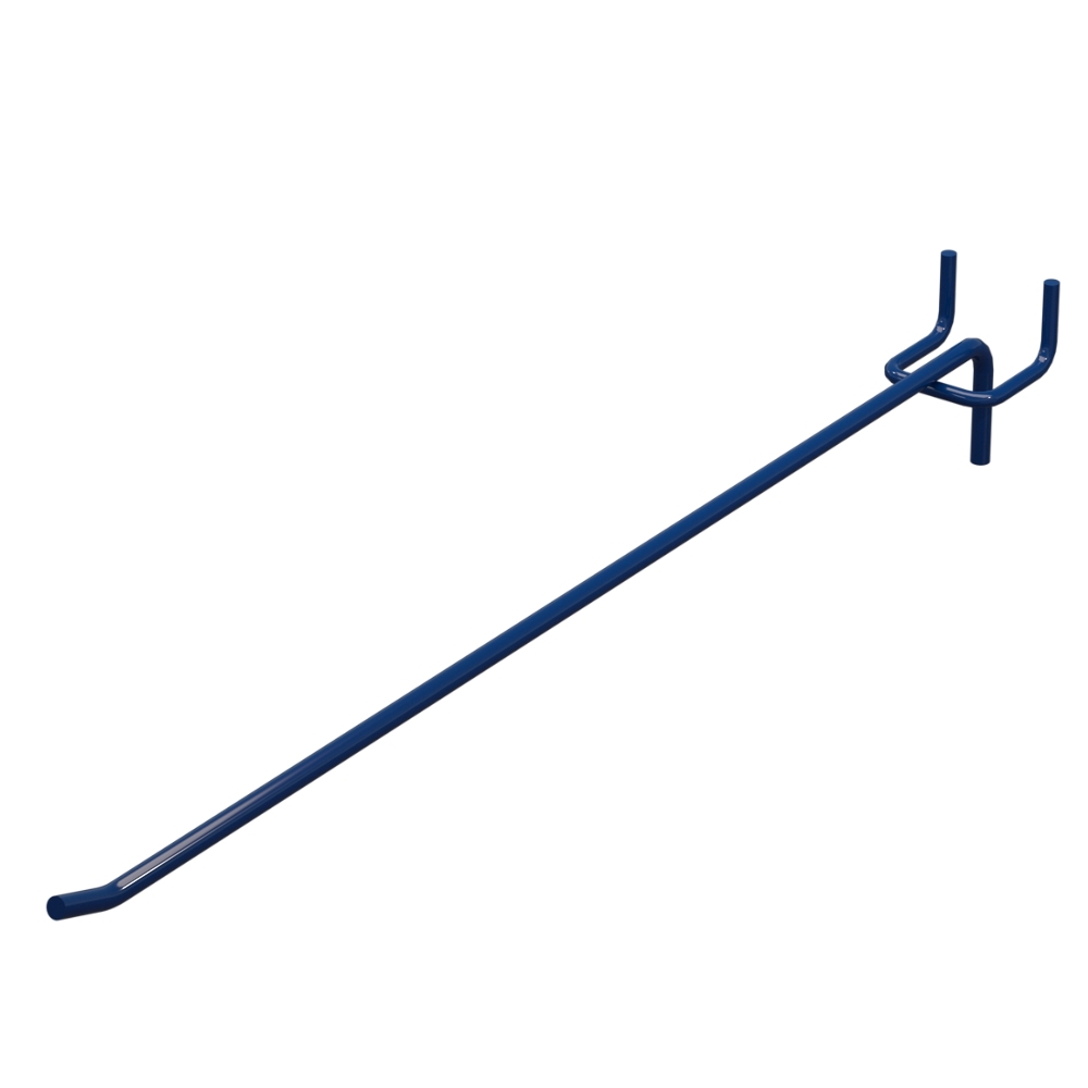Крючок для перфорации одинарный длиной 350 мм предназначен для размещения товаров на торговых стендах с перфорацией. Материал изготовления — стальной прут диаметром 5 мм. Длина крючка составляет 350 мм. Поверхность окрашена в цвет Синий RAL5002. Шаг перфорации — 50 мм. Крючок относится к типу Одинарный, крепление — На перфорацию.