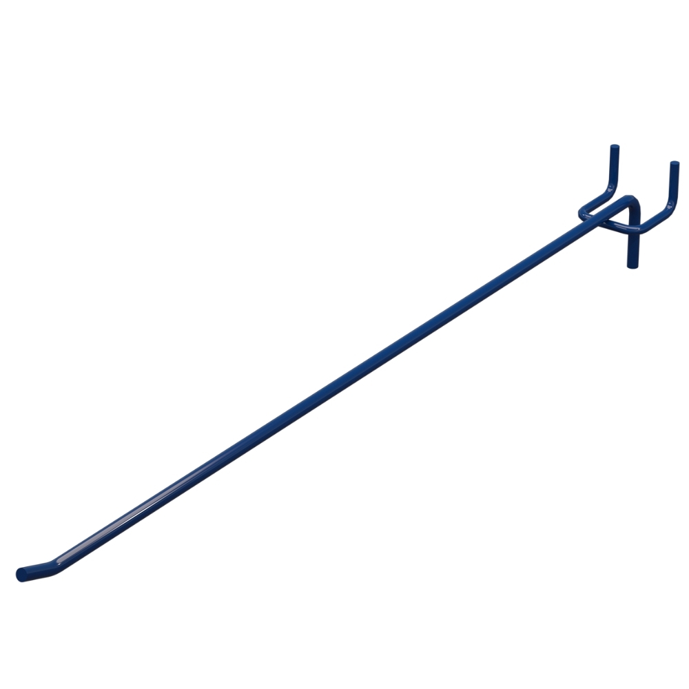 Одинарный торговый крючок длиной 400 мм предназначен для размещения товаров на торговых стендах с перфорацией. Прут диаметром 8 мм обеспечивает прочность и надежность. Длина изделия — 400 мм. Покрытие — Синий RAL5002. Крючок предназначен для крепления на перфорации с шагом 50 мм. Тип — Одинарный. Способ крепления — На перфорацию.
