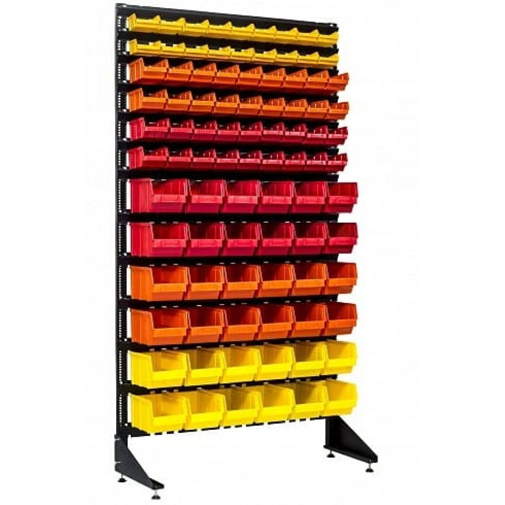 Для розничных точек и СТО с оборотом 2000–8000 SKU — стеллаж односторонний для склада или магазина - 90 ящиков — оптимальное решение для хранения болтов, гаек, саморезов, дюбелей, шайб, заклепок, шурупов. Площадь 1000×350 мм, вмещает до 38 000 единиц. Комплектация: 24×701 LUX желтый, 24×701 LUX красный, 27×702 LUX красный, 54×703 LUX желтый. 13 траверс — нагрузка 250 кг. Высота 1800 мм, перфорация 50 мм. Заказывайте в Торгпроект по ссылке стеллаж 90 ящиков.