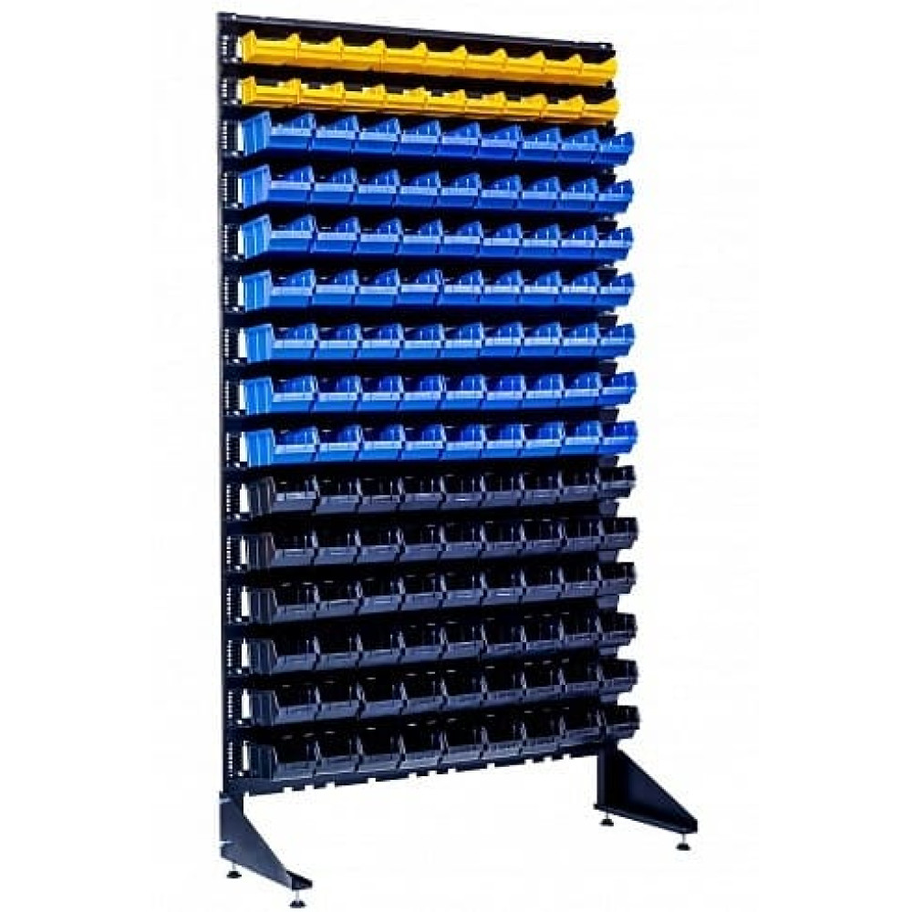Витрина на 135 ящиков – это универсальное решение для хранения крепежных изделий и мелких деталей в мастерских, магазинах и на складах. Компактная конструкция (1800x1000x350 мм) позволяет размещать стеллажи для метизов в ограниченном пространстве, а нагрузка до 250 кг обеспечивает надежность при полной загрузке. Витрина оснащена пластиковыми кюветами: 54 черных ящика 702 LUX (165x100x75 мм), 63 синих ящика 702 LUX (165x100x75 мм) и 18 желтых ящика 703 LUX (100x100x50 мм). Это идеальный выбор для хранения болтов, гаек, шурупов и заклепок.