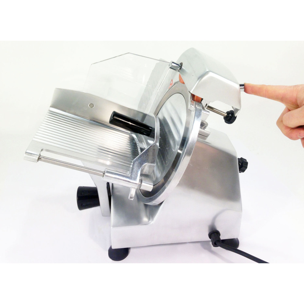 - Модель напівавтоматична (з ручною подачею), товщина нарізки 0-12 мм.