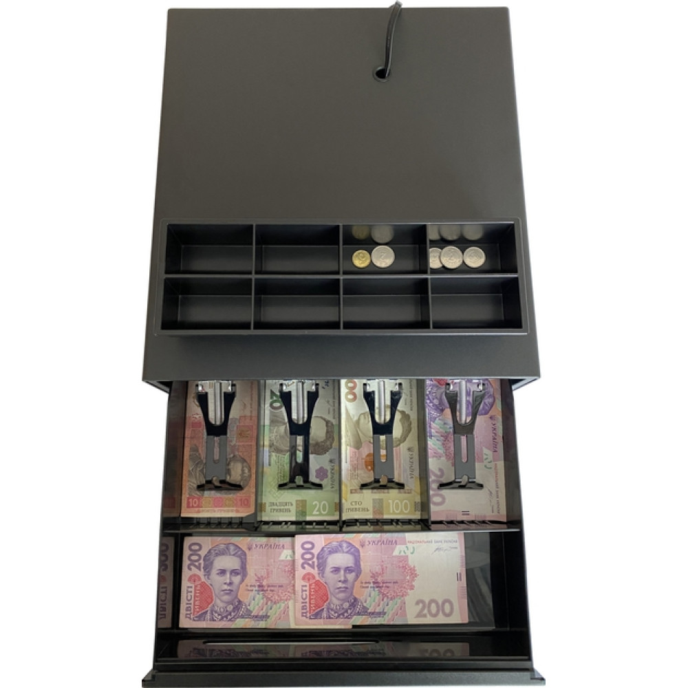 Денежный ящик выполняет не только функцию органайзера для наличных средств, но и обеспечивает: