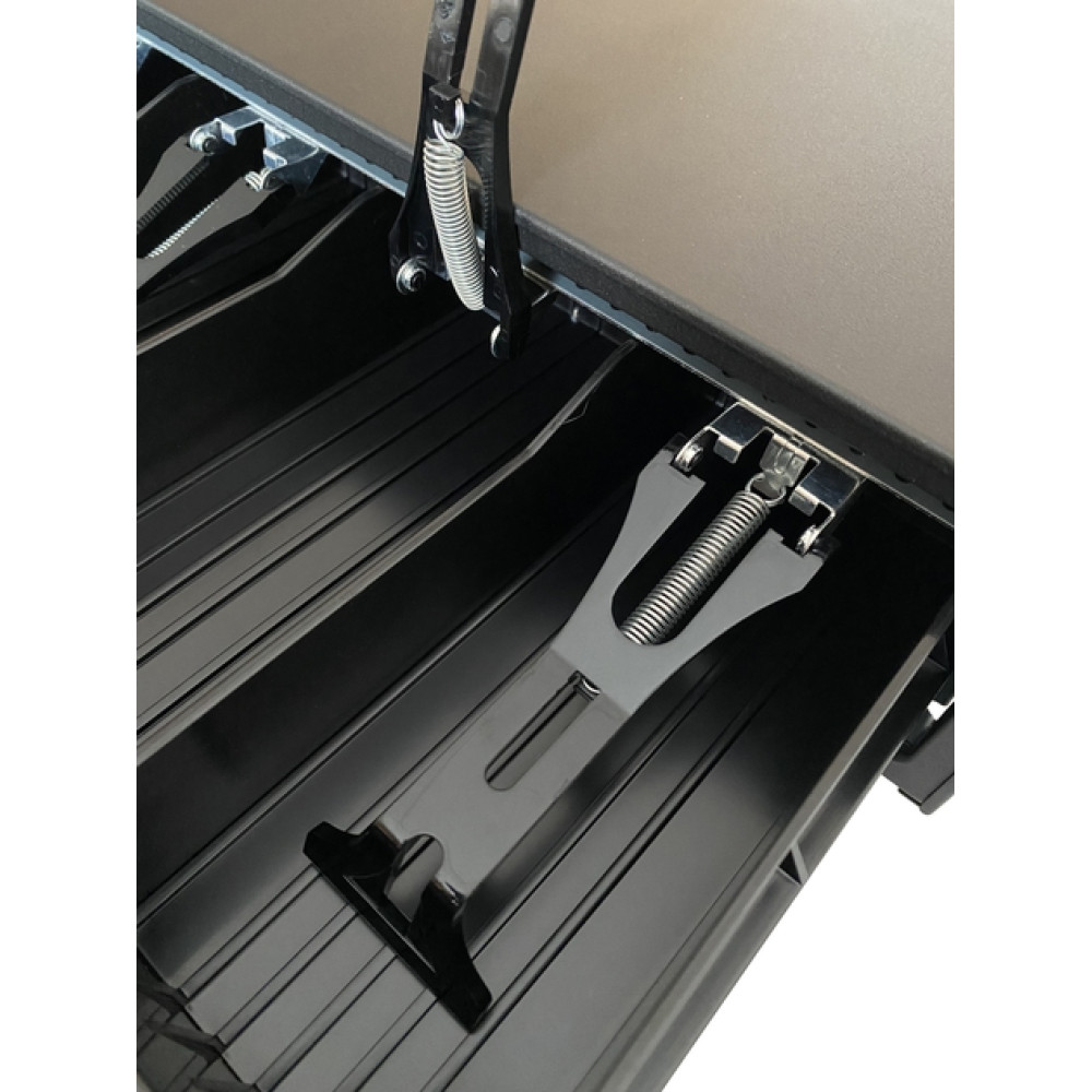 Выдвижной механизм ящика базируется на шарикоподшипниках, что обеспечивает плавное и бесшумное скольжение лотка. Замок рассчитан на три положения ключа, включая: