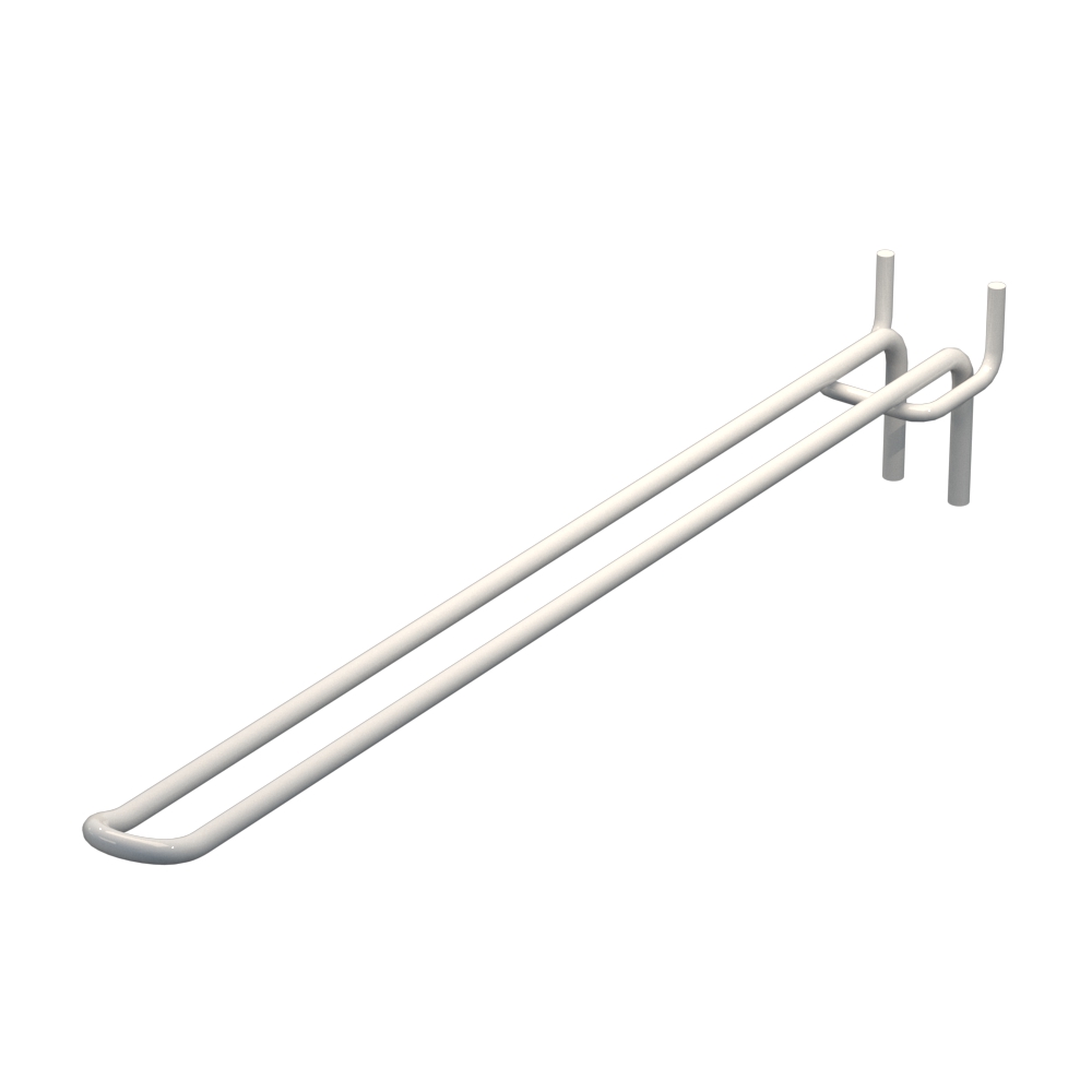 Двойные крючки для перфорации длиной 300 мм подходят для оформления торгового пространства с использованием перфопанелей. Конструкция изготовлена из стали с толщиной прута 5 мм. Покрытие выполнено в цвете Белый RAL9003. Шаг перфорации — 35 мм. Тип крючка — Двойной. Способ установки — На перфорацию.