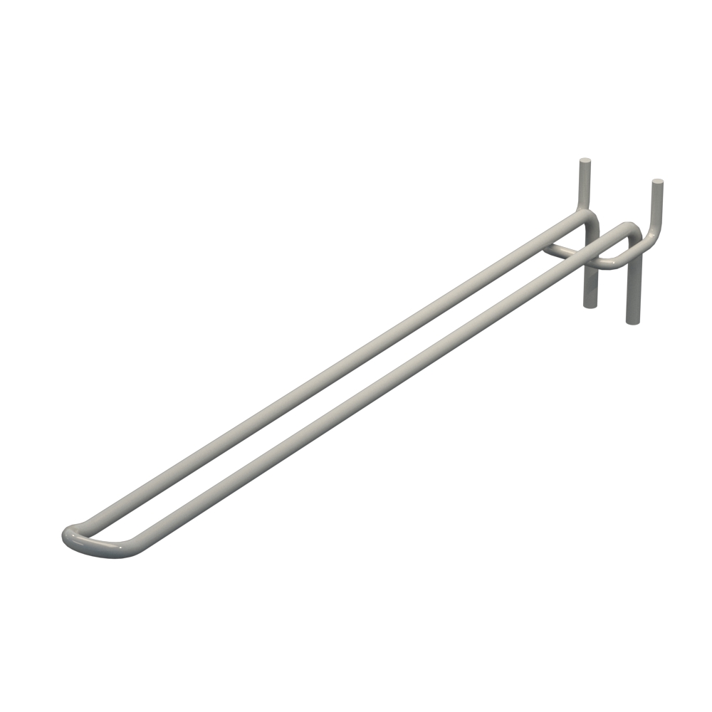 Торговые двойные крючки для выкладки товаров длиной 300 мм предназначены для надежного размещения товаров на перфорированных стендах. Изделие выполнено из металлического прута диаметром 5 мм. Покрытие цвета Светло серый RAL7035 защищает конструкцию от повреждений и коррозии. Шаг крепления составляет 30 мм. Тип исполнения — Двойной. Способ крепления — На перфорацию.