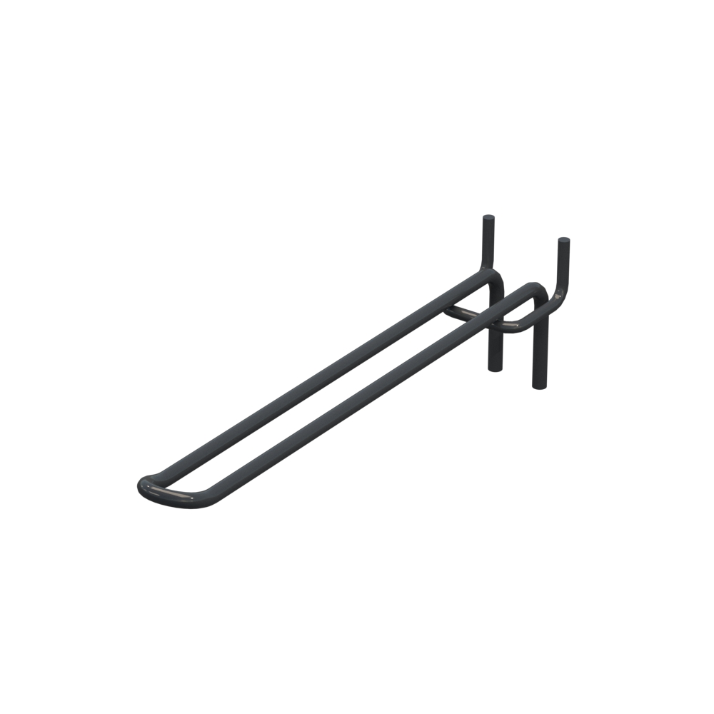 Торговые крючки для перфорации длиной 200 мм предназначены для надежного размещения товаров на перфорированных стендах. Конструкция изготовлена из стали с толщиной прута 5 мм. Покрытие выполнено в цвете Антрацит RAL7024. Шаг перфорации — 30 мм. Тип крючка — Двойной. Способ установки — На перфорацию.