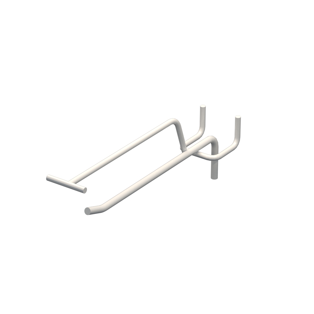Крючки одинарные с ценникодержателем длиной 150 мм обеспечивают удобное размещение товаров на перфорированных панелях. Изделие изготовлено из стали с прутом диаметром 5 мм. Поверхность окрашена в цвет Белый RAL9003. Шаг перфорации — 30 мм. Тип конструкции — Одинарный с ценникодержателем. Способ монтажа — На перфорацию.