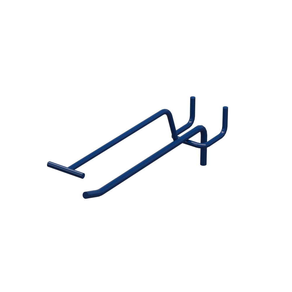 Торговый крючок с держателем ценника длиной 150 мм предназначены для размещения продукции на торговых стендах с перфорацией. Изделие изготовлено из стали с прутом диаметром 5 мм. Поверхность окрашена в цвет Синий RAL5002. Шаг перфорации — 40 мм. Тип конструкции — Одинарный с ценникодержателем. Способ монтажа — На перфорацию.