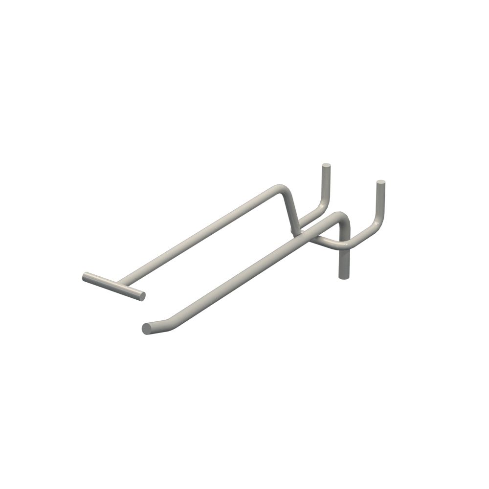 Одинарные торговые крючки с ценникодержателем на перфорацию длиной 150 мм применяются для выкладки продукции в магазинах и торговых точках. Конструкция выполнена из металлического прута диаметром 5 мм. Покрытие цвета Светло серый RAL7035 обеспечивает защиту от коррозии. Шаг крепления составляет 25 мм. Тип исполнения — Одинарный с ценникодержателем. Способ крепления — На перфорацию.