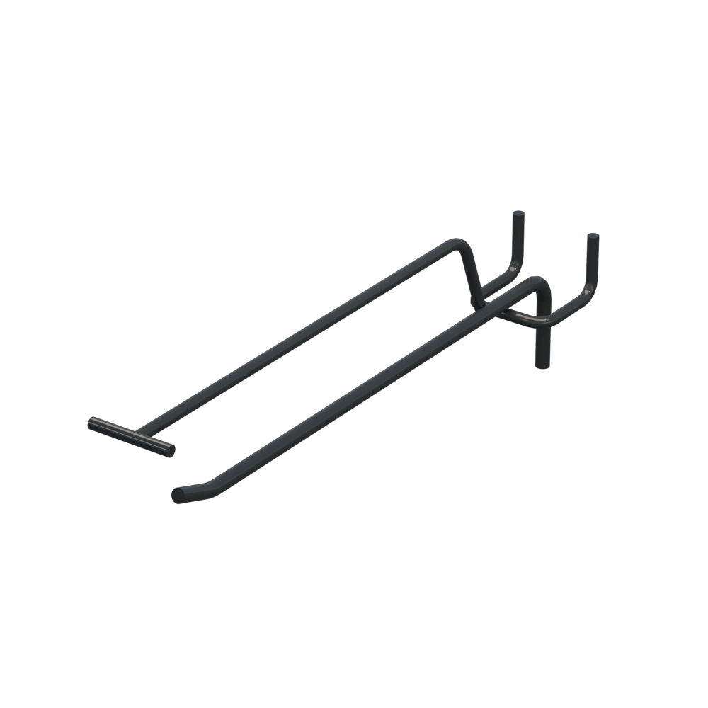 Одинарные торговые крючки с ценникодержателем на перфорацию длиной 200 мм обеспечивают удобное размещение товаров на перфорированных панелях. Конструкция выполнена из металлического прута диаметром 5 мм. Покрытие цвета Графитовый RAL7016 обеспечивает защиту от коррозии. Шаг крепления составляет 45 мм. Тип исполнения — Одинарный с ценникодержателем. Способ крепления — На перфорацию.