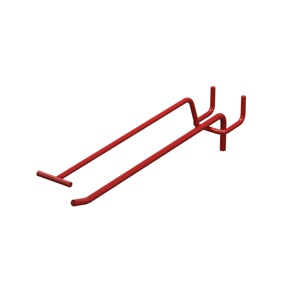 Крючки одинарные с ценникодержателем длиной 200 мм применяются для выкладки продукции в магазинах и торговых точках. Металлический прут толщиной 5 мм гарантирует надежность. Цвет покрытия — Красный RAL3020. Шаг между отверстиями перфорации составляет 40 мм. Тип изделия — Одинарный с ценникодержателем. Способ крепления — На перфорацию.