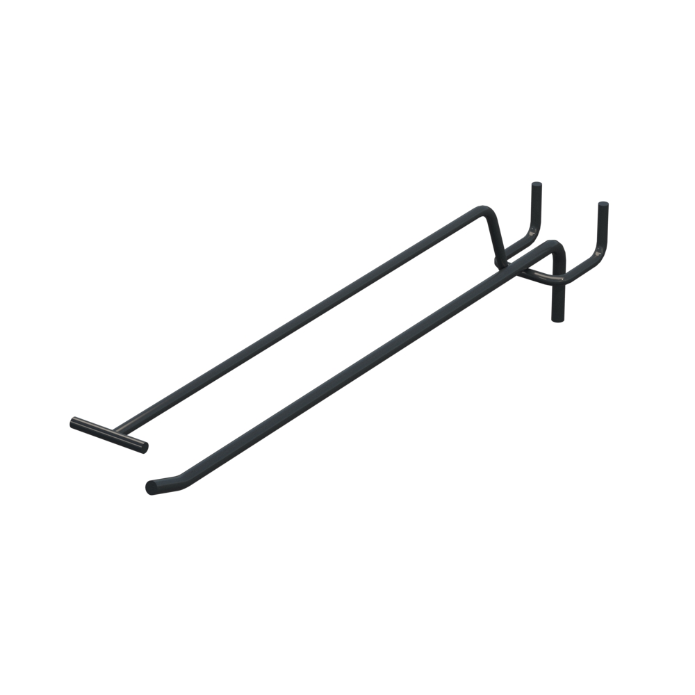 Крючки с ценникодержателем одинарные длиной 250 мм обеспечивают удобное размещение товаров на перфорированных панелях. Изделие изготовлено из стали с прутом диаметром 5 мм. Поверхность окрашена в цвет Графитовый RAL7016. Шаг перфорации — 50 мм. Тип конструкции — Одинарный с ценникодержателем. Способ монтажа — На перфорацию.