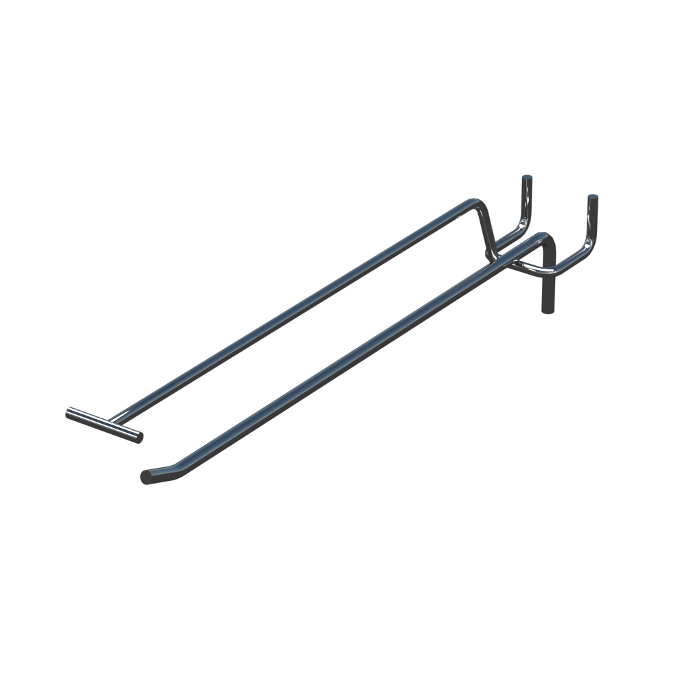 Торговый крючок с держателем ценника длиной 250 мм применяются для выкладки продукции в магазинах и торговых точках. Металлический прут толщиной 5 мм гарантирует надежность. Цвет покрытия — Хром. Шаг между отверстиями перфорации составляет 45 мм. Тип изделия — Одинарный с ценникодержателем. Способ крепления — На перфорацию.