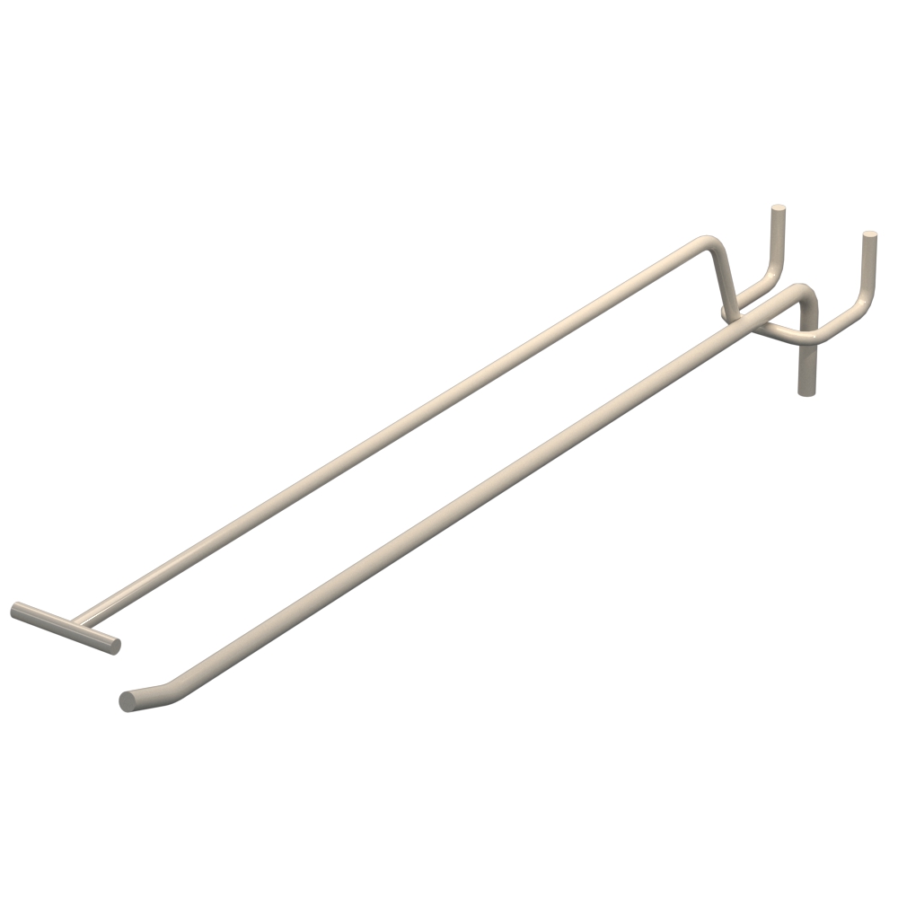 Торговый крючок с держателем ценника длиной 300 мм применяются для выкладки продукции в магазинах и торговых точках. Металлический прут толщиной 5 мм гарантирует надежность. Цвет покрытия — Бежевый RAL9001. Шаг между отверстиями перфорации составляет 50 мм. Тип изделия — Одинарный с ценникодержателем. Способ крепления — На перфорацию.