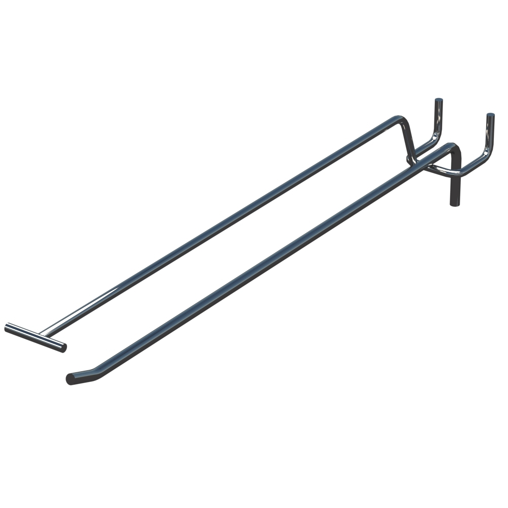 Одинарные торговые крючки с ценникодержателем на перфорацию длиной 300 мм предназначены для размещения продукции на торговых стендах с перфорацией. Конструкция выполнена из металлического прута диаметром 5 мм. Покрытие цвета Хром обеспечивает защиту от коррозии. Шаг крепления составляет 35 мм. Тип исполнения — Одинарный с ценникодержателем. Способ крепления — На перфорацию.