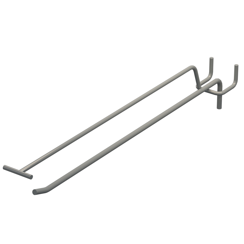 Крючок одинарный с ценникодержателем для перфорации длиной 300 мм обеспечивают удобное размещение товаров на перфорированных панелях. Металлический прут толщиной 5 мм гарантирует надежность. Цвет покрытия — Серый RAL9006. Шаг между отверстиями перфорации составляет 40 мм. Тип изделия — Одинарный с ценникодержателем. Способ крепления — На перфорацию.
