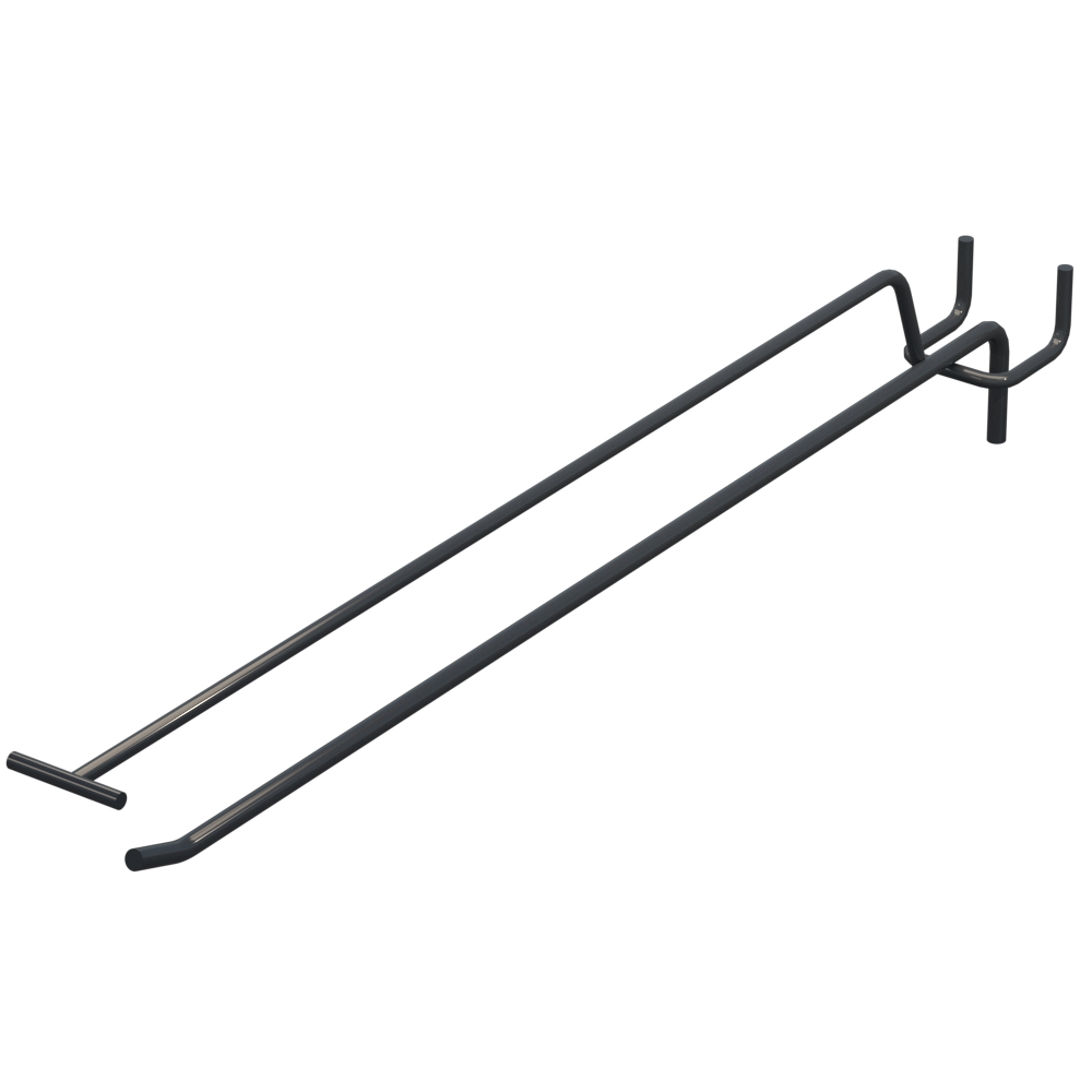 Крючки одинарные с ценникодержателем длиной 350 мм обеспечивают удобное размещение товаров на перфорированных панелях. Конструкция выполнена из металлического прута диаметром 5 мм. Покрытие цвета Антрацит RAL7024 обеспечивает защиту от коррозии. Шаг крепления составляет 50 мм. Тип исполнения — Одинарный с ценникодержателем. Способ крепления — На перфорацию.