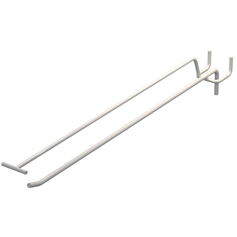 Крючки одинарные с ценникодержателем длиной 350 мм обеспечивают удобное размещение товаров на перфорированных панелях. Металлический прут толщиной 5 мм гарантирует надежность. Цвет покрытия — Белый RAL9003. Шаг между отверстиями перфорации составляет 45 мм. Тип изделия — Одинарный с ценникодержателем. Способ крепления — На перфорацию.