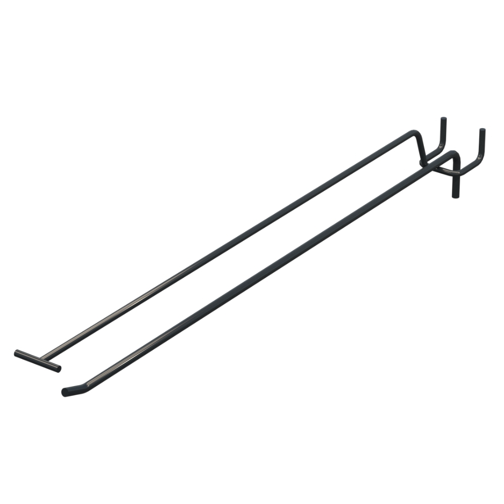 Крючки одинарные с ценникодержателем длиной 400 мм предназначены для размещения продукции на торговых стендах с перфорацией. Изделие изготовлено из стали с прутом диаметром 5 мм. Поверхность окрашена в цвет Графитовый RAL7016. Шаг перфорации — 50 мм. Тип конструкции — Одинарный с ценникодержателем. Способ монтажа — На перфорацию.