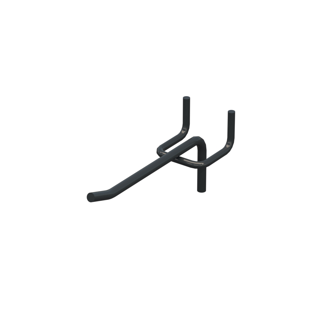 Гачок для магазину з довжиною 100 мм застосовується для викладання продукції на перфорованих панелях. Виріб виконаний із металу з прутом діаметром 5 мм. Покриття кольору Графітовий RAL7016 забезпечує захист від корозії. Крок кріплення – 45 мм. Тип виконання - Одинарний. Кріплення - На перфорацію.