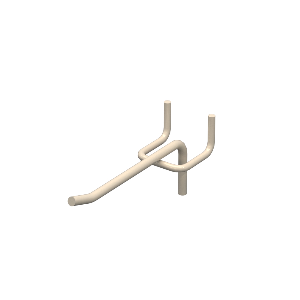 Одинарний торговий гачок із довжиною 100 мм застосовується для викладення продукції на перфорованих панелях. Матеріал виготовлення - сталевий прут діаметром 5 мм. Довжина гачка становить 100 мм. Поверхня пофарбована в колір бежевий RAL9001. Крок перфорації – 30 мм. Гачок відноситься до типу одинарний, кріплення - на перфорацію.