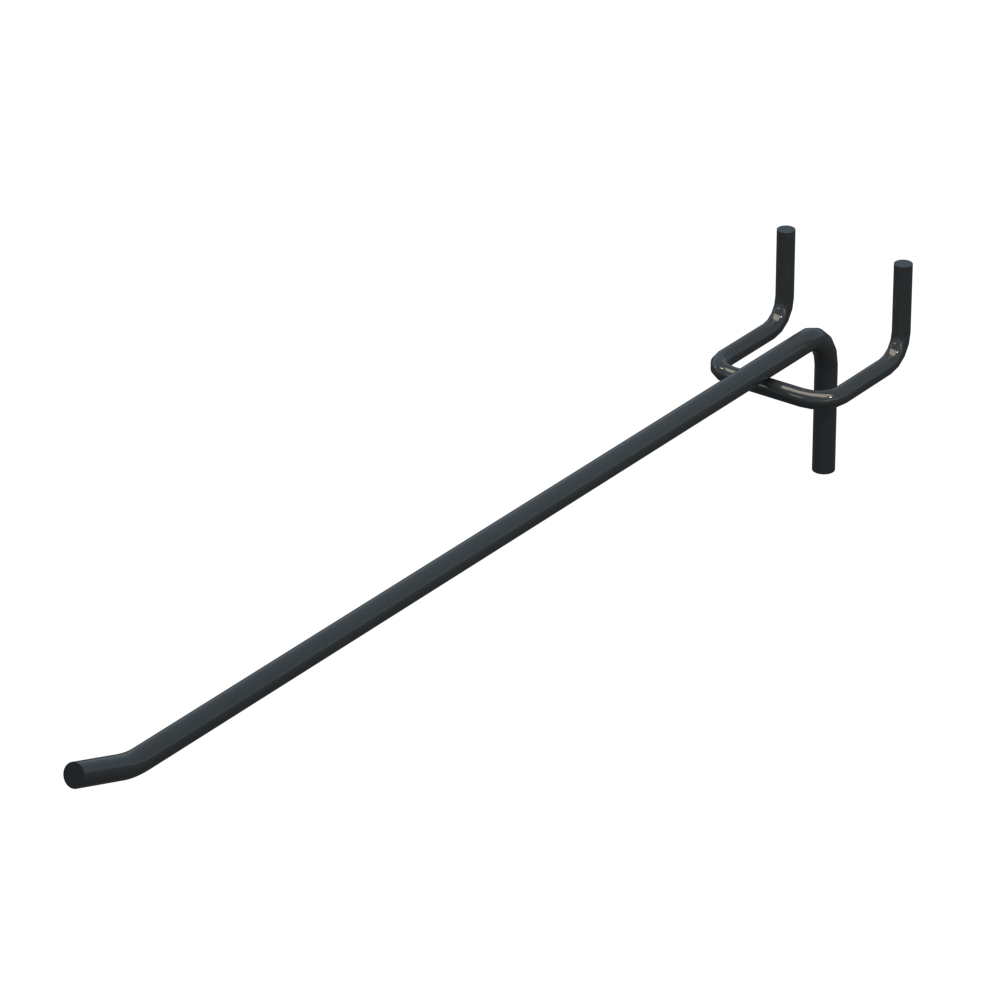 Одинарний торговий гачок із довжиною 250 мм застосовується для викладення продукції на перфорованих панелях. Виріб виконаний із металу з прутом діаметром 4 мм. Покриття кольору Графітовий RAL7016 забезпечує захист від корозії. Крок кріплення – 45 мм. Тип виконання - Одинарний. Кріплення - На перфорацію.