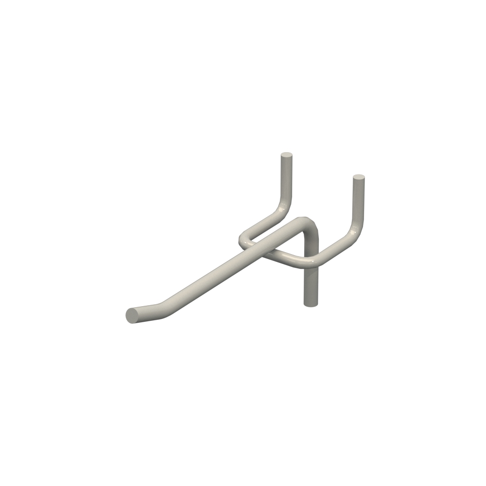 Гачок для магазину довжиною 100 мм виготовлений із металевого прута діаметром 4 мм. Виріб виконаний із металу з прутом діаметром 4 мм. Світло сірий RAL7035 забезпечує захист від корозії. Крок кріплення – 40 мм. Тип виконання - Одинарний. Кріплення - На перфорацію.