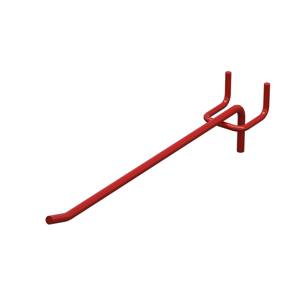 Одинарний гачок довжиною 200 мм призначений для розміщення товарів на торгових стендах з перфорацією. Виріб виконаний із металу з прутом діаметром 5 мм. Червоний RAL3020 забезпечує захист від корозії. Крок кріплення – 40 мм. Тип виконання - Одинарний. Кріплення - На перфорацію.