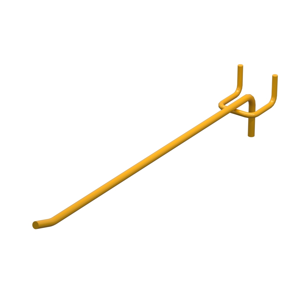 Гачок для магазину довжиною 250 мм призначений для розміщення товарів на торгових стендах із перфорацією. Виріб виконаний із металу з прутом діаметром 5 мм. Покриття кольору Жовтий RAL1023 забезпечує захист від корозії. Крок кріплення – 25 мм. Тип виконання - Одинарний. Кріплення - На перфорацію.